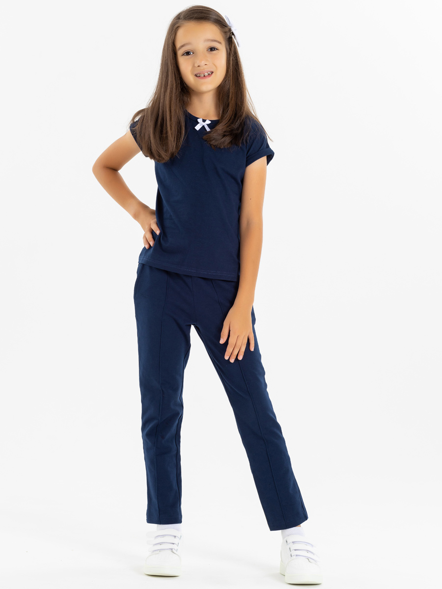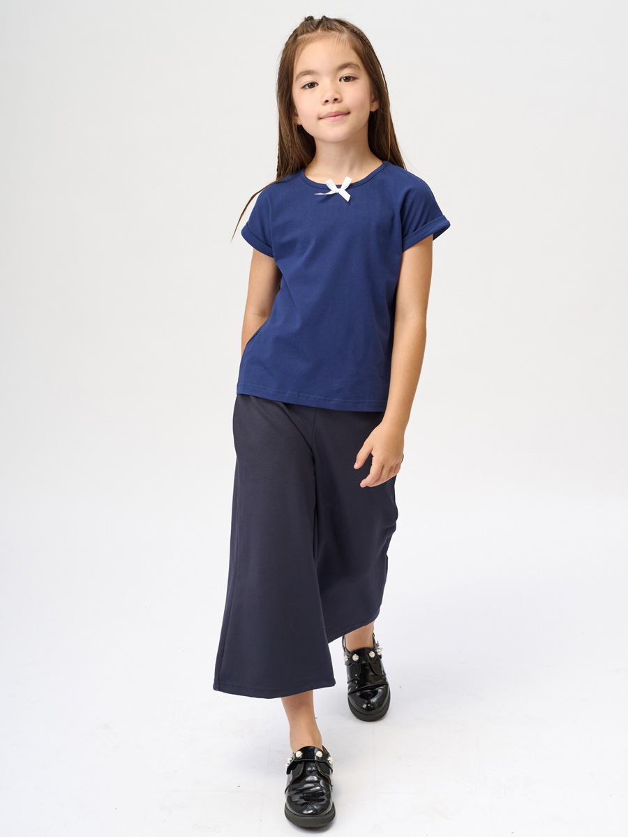 Темно-синяя футболка "ШКОЛА 2022" для девочки (487750027)