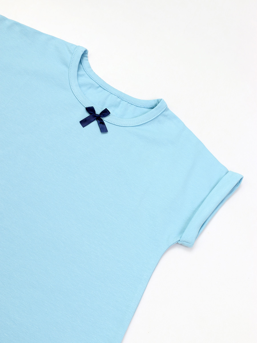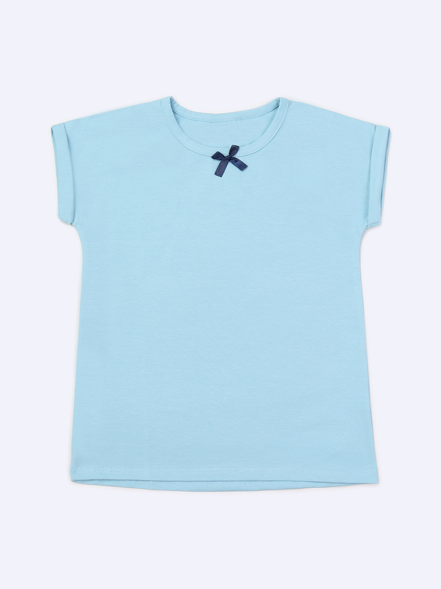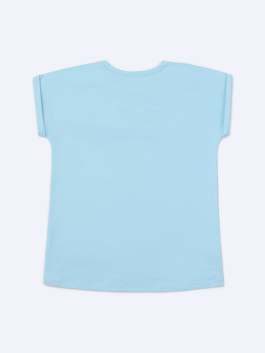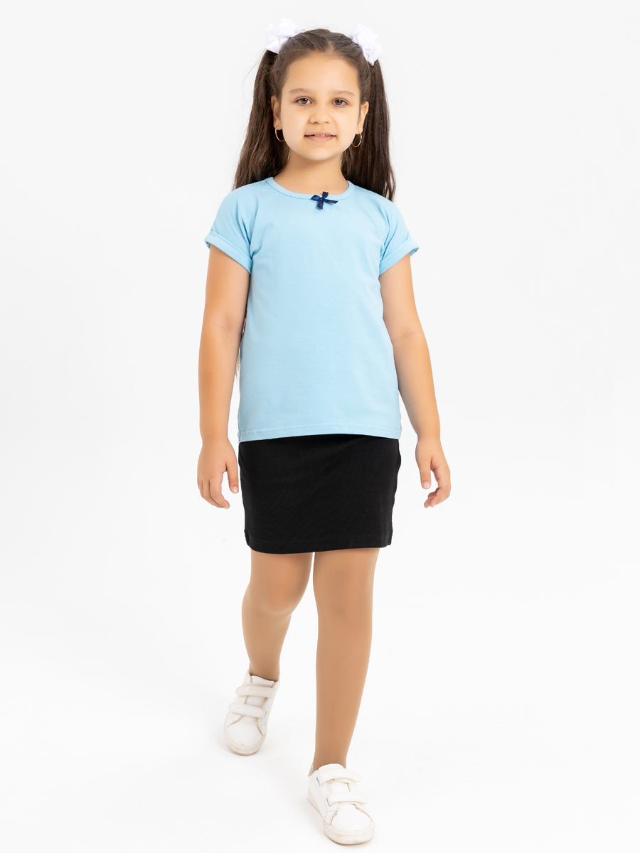 Голубая футболка "ШКОЛА 2022" для девочки (487750028)