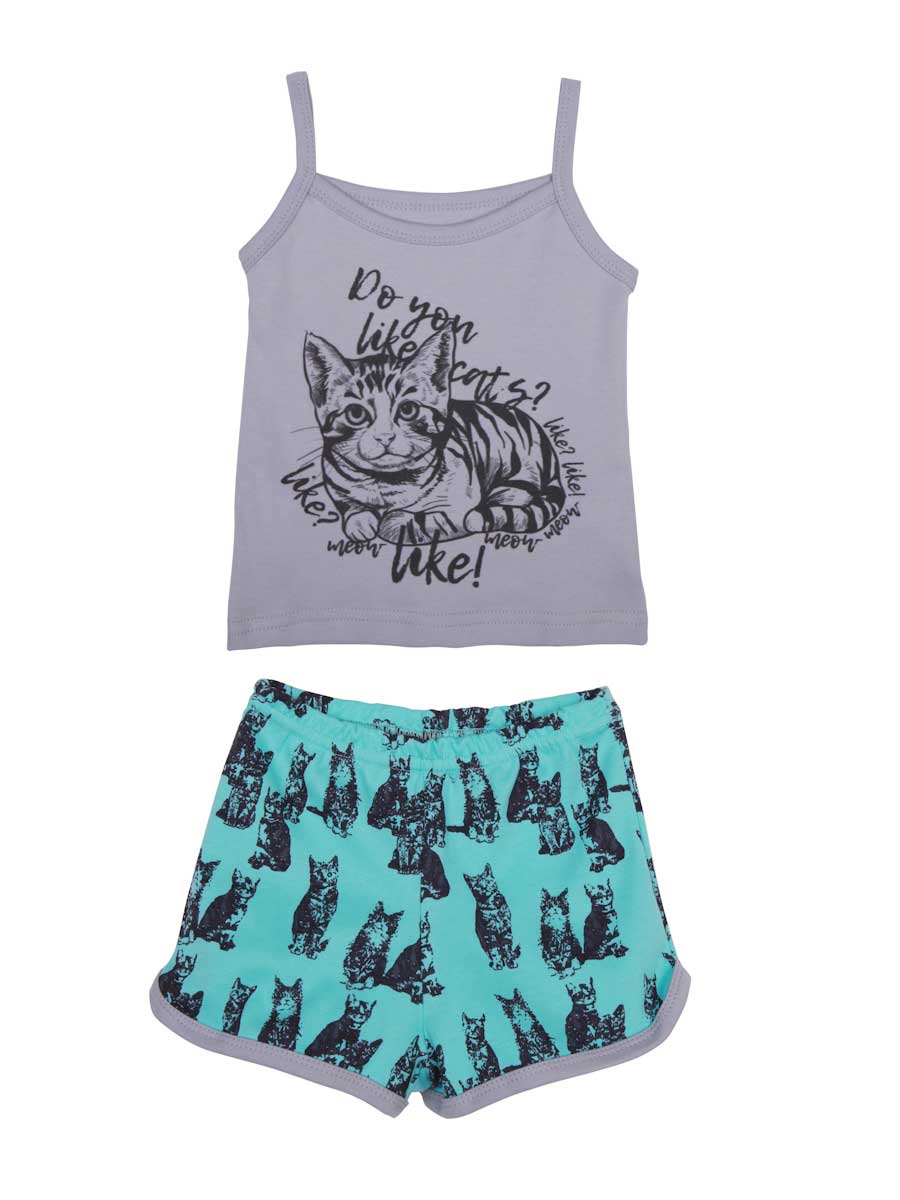 16024 Пижама: майка, шорты "Кошки" для девочки