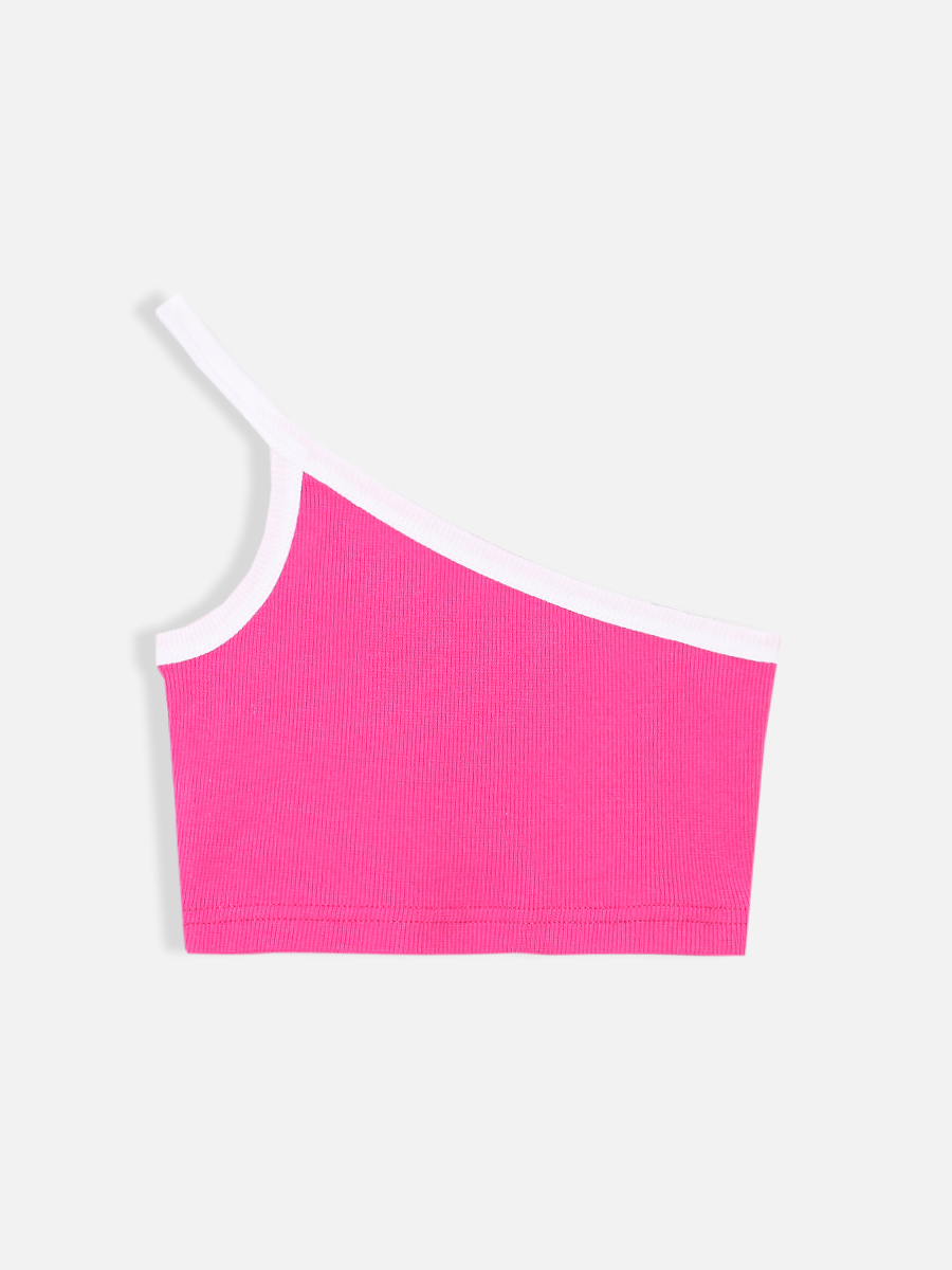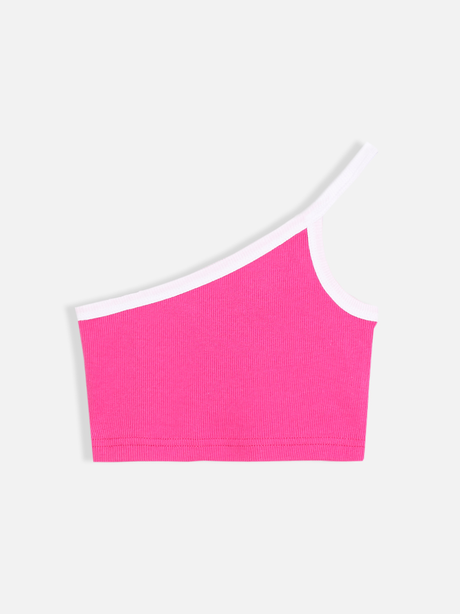 Белый топ на одной лямке "Summer 2023" для девочки (369730010)