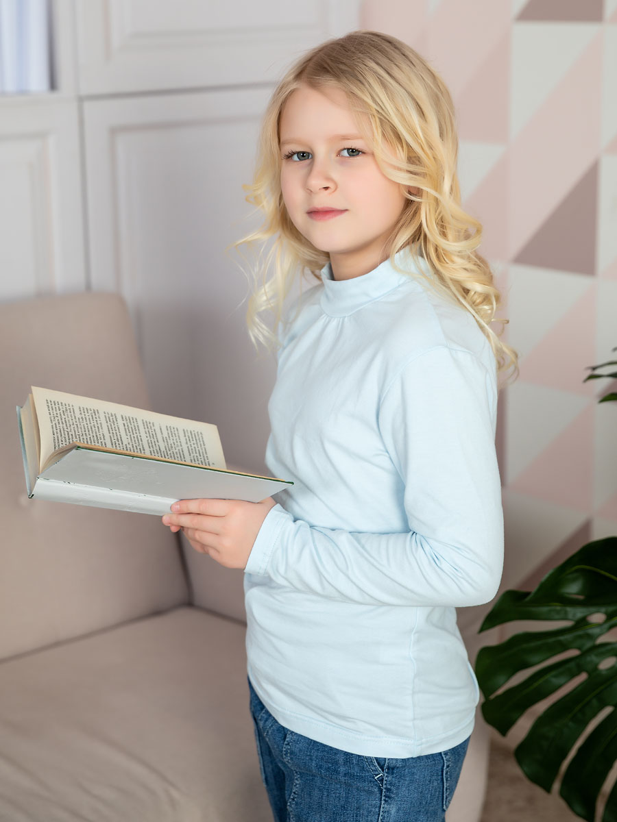 Голубая водолазка в школу для девочки (13330)