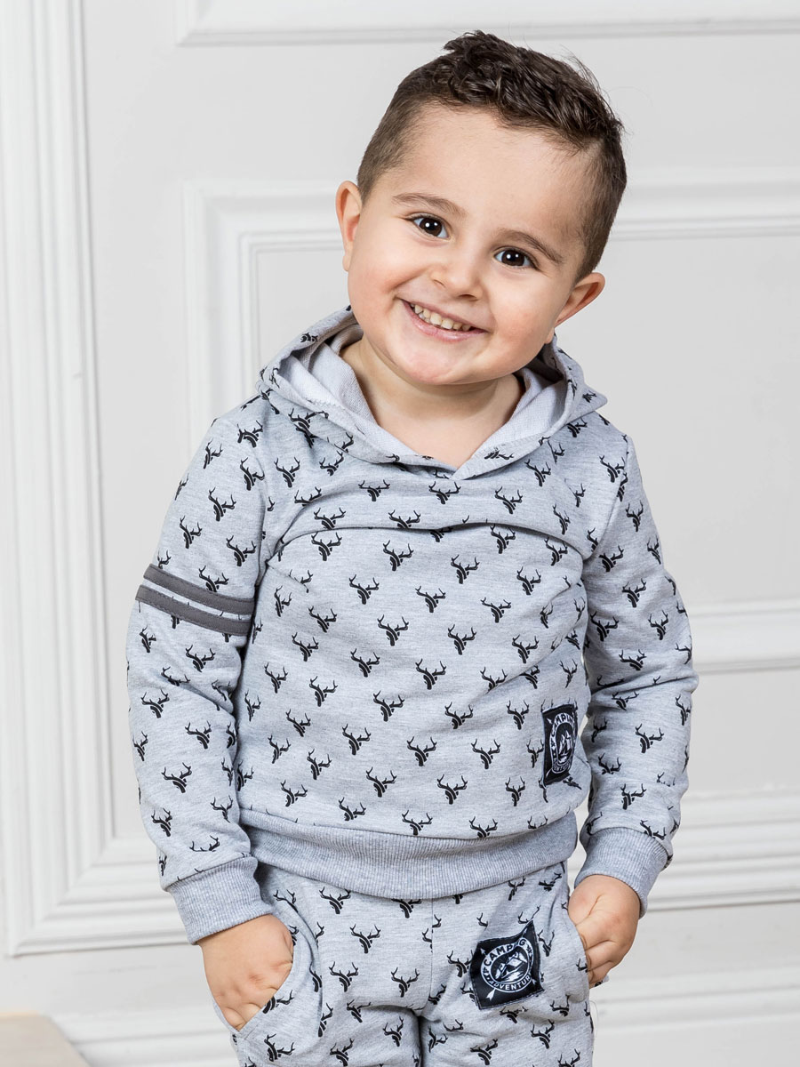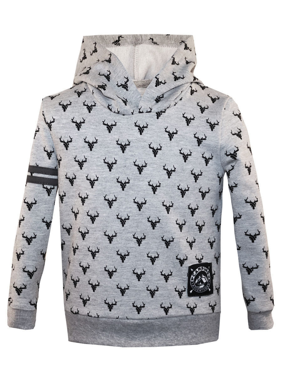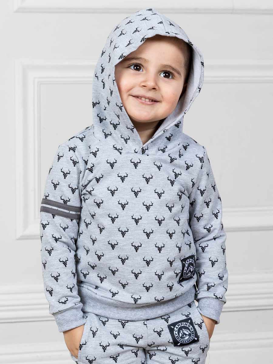 4. Серая толстовка с капюшоном "Северные олени" для мальчика (8220292)
