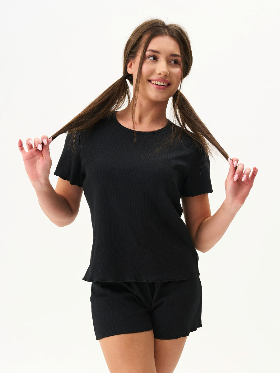 Чёрная женская пижама с футболкой (300027)