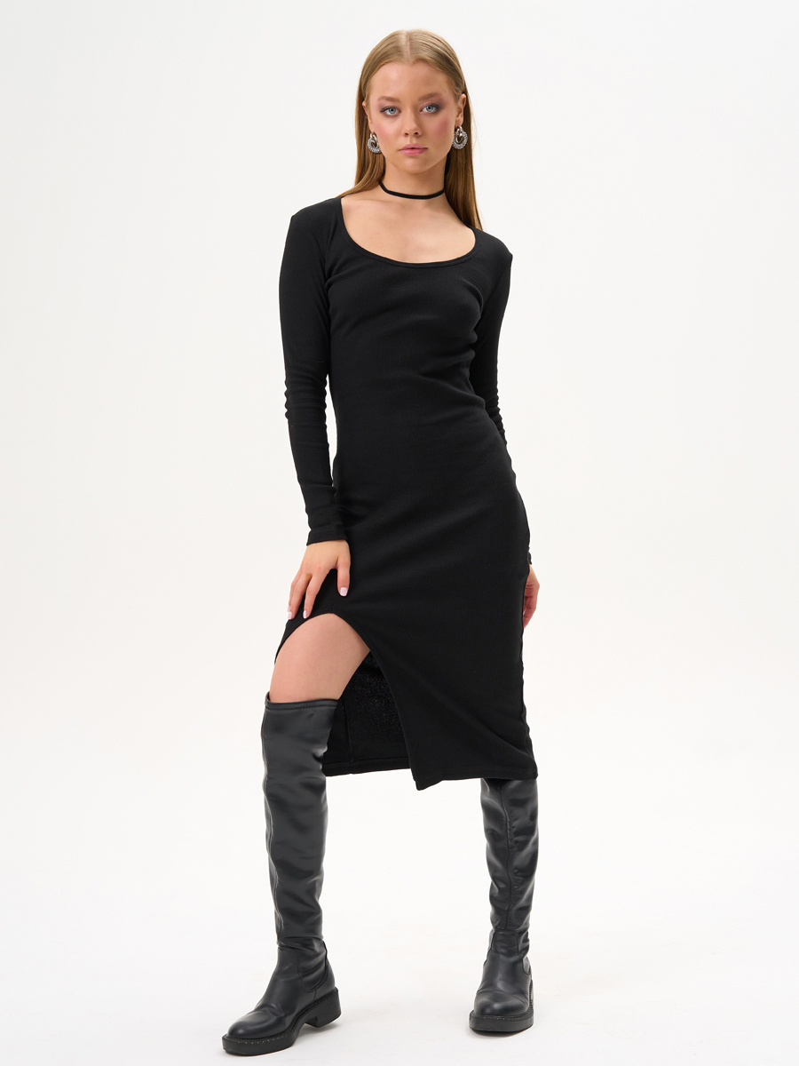 Чёрное женское платье с вырезом (207932552)
