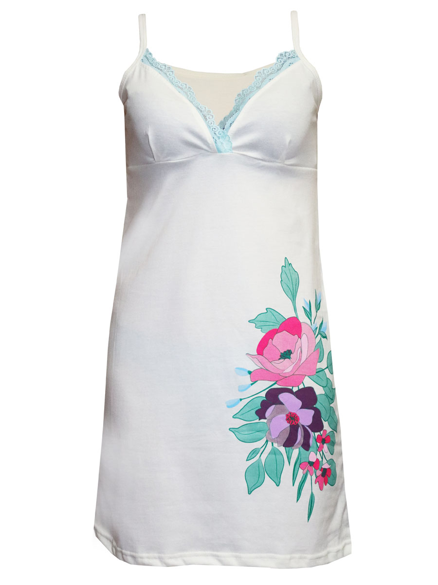 Белая сорочка с цветочным принтом "Нежность" женская (17105)