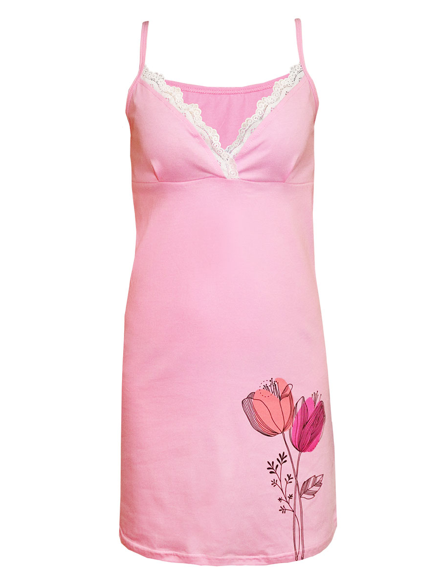Розовая женская сорочка "Тюльпаны" (17107)